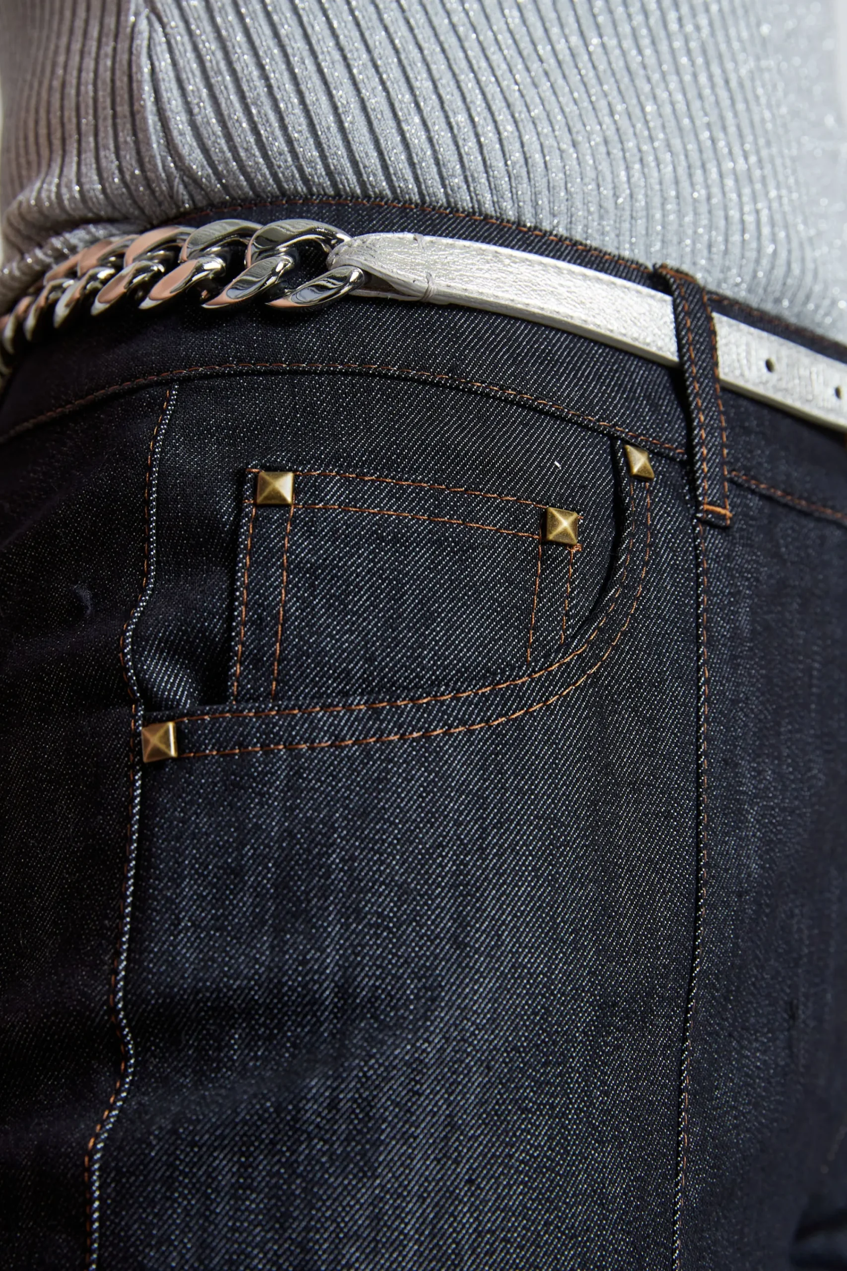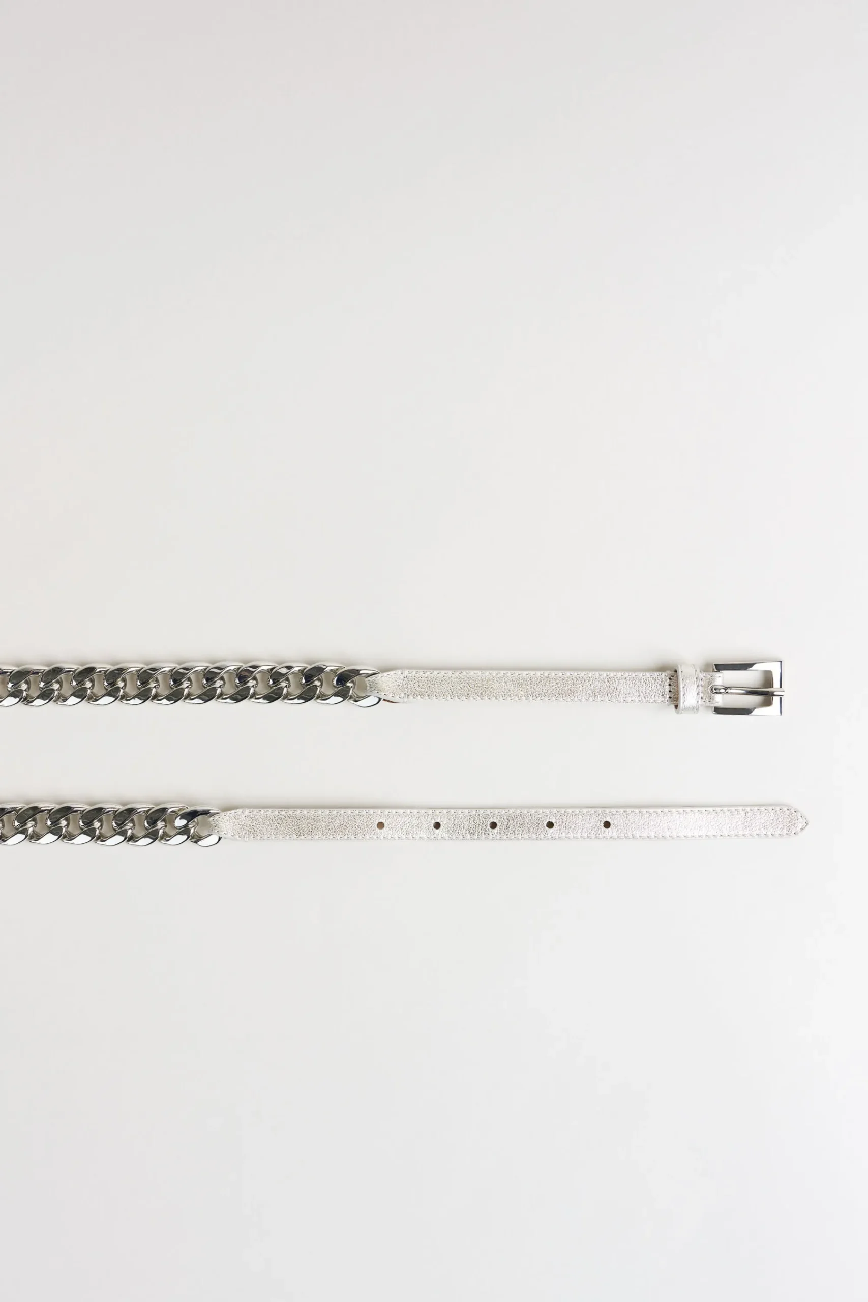 The “IT” accessory for Spring. Add an effortless glam factor to any look with our Silver Chain link belt. We love it worn with a suit or dress – style meets function with the must-have belt of the season. Wear it buckled in the back for an all chain look, or wear it buckled in the front highlighting its modern leather tab closure and silver buckle. Brass Chain Metallic Leather Belt 100% Leather, Silver Made in Italy A815G003