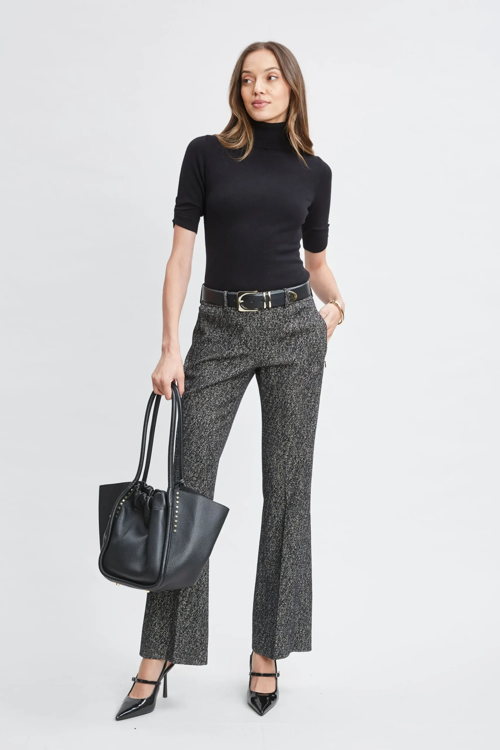 Our Luxe Cashmere Blend Turtleneck Sweater is undeniably soft to the touch and so versatile. The ruching sleeve detail gives it a designer twist – perfect for wearing on its own or layering it for cooler days. Elie Tahari Exclusive Short Sleeve Turtleneck Cashmere Sweater 70% Merino; 30% Cashmere Runs true to Size Model is 5’9″ and wearing size S Length From Shoulder to Hem: Back 23.5″L , Sleeve: 10.5″L (approx. length for size S) Dry Clean Only Imported Style #: ER54X504